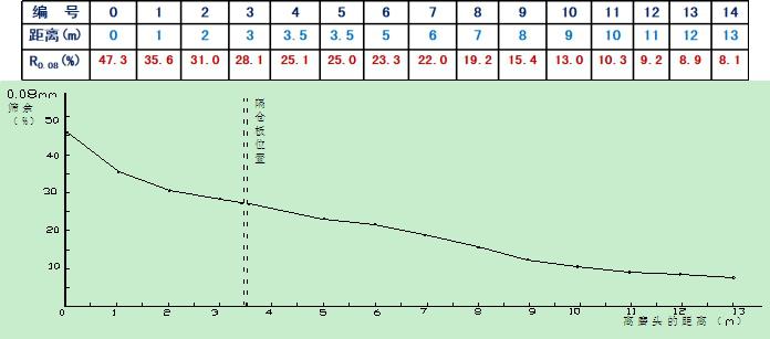 把每個取樣點取得的試樣混合均勻后,作為該取樣點的平均試樣并編好號,防止搞錯,用0.08mm篩分別進行篩析,測得各段的篩余百分數(shù);然后以縱坐標為測出的篩余%(細度),橫坐標為取樣點離磨頭的距離(m),把篩析數(shù)據(jù),標記在坐標圖上、聯(lián)線,即為磨內(nèi)篩析曲線。
