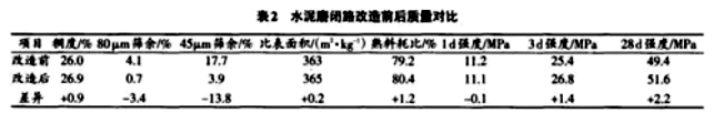 由表2可以看出,改造后80um篩細度從4.1%降到0.7%,45μm篩細度從17.7%降到3.9%,入收塵器粉塵細度大幅下降,而且粒度均勻。改造前風機運行時一個人就能把收塵器上箱體上部檢修門打開,改造后因負壓增大兩個人同時用力都打不開。