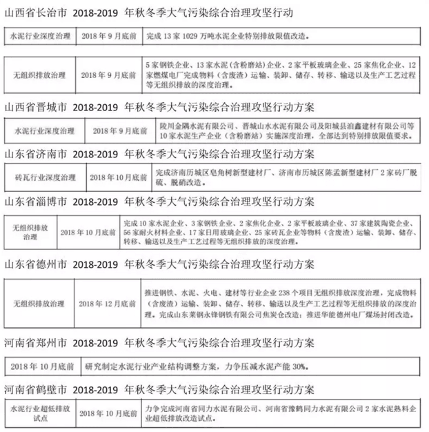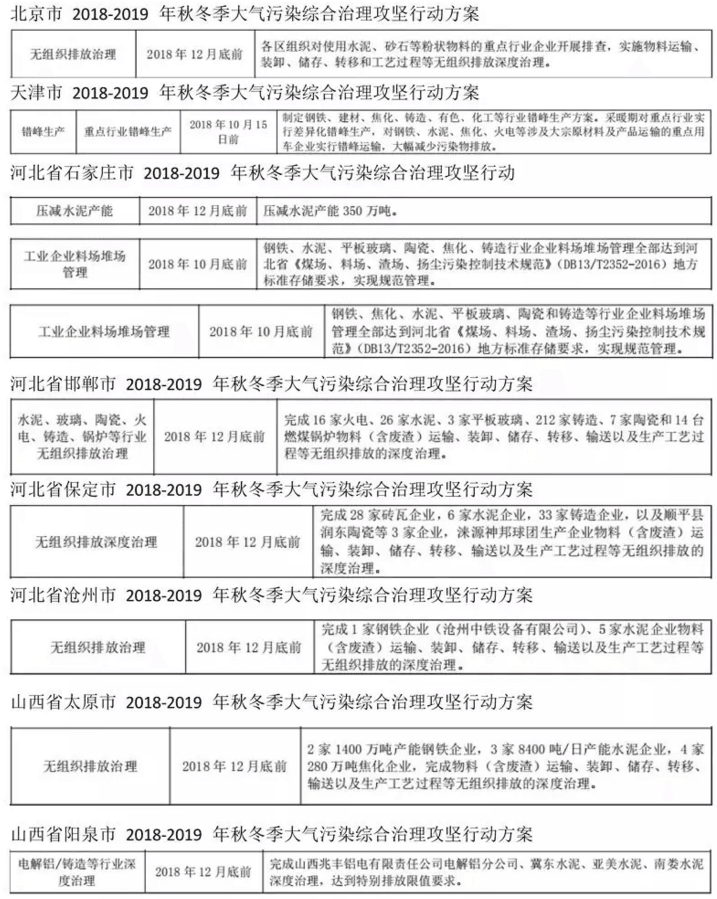 自2018年10月 1 日起,嚴(yán)格執(zhí)行火電、鋼鐵、石化、化工、有色(不含氧化鋁)、水泥行業(yè)以及工業(yè)鍋爐大氣污染物特別排放限值(見(jiàn)附件),推進(jìn)重點(diǎn)行業(yè)污染治理設(shè)施升級(jí)改造。繼續(xù)推進(jìn)工業(yè)企業(yè)無(wú)組織排放治理,在安全生產(chǎn)許可條件下,實(shí)施封閉儲(chǔ)存、密閉輸送、系統(tǒng)收集,2018 年 12 月底前基本完成。
