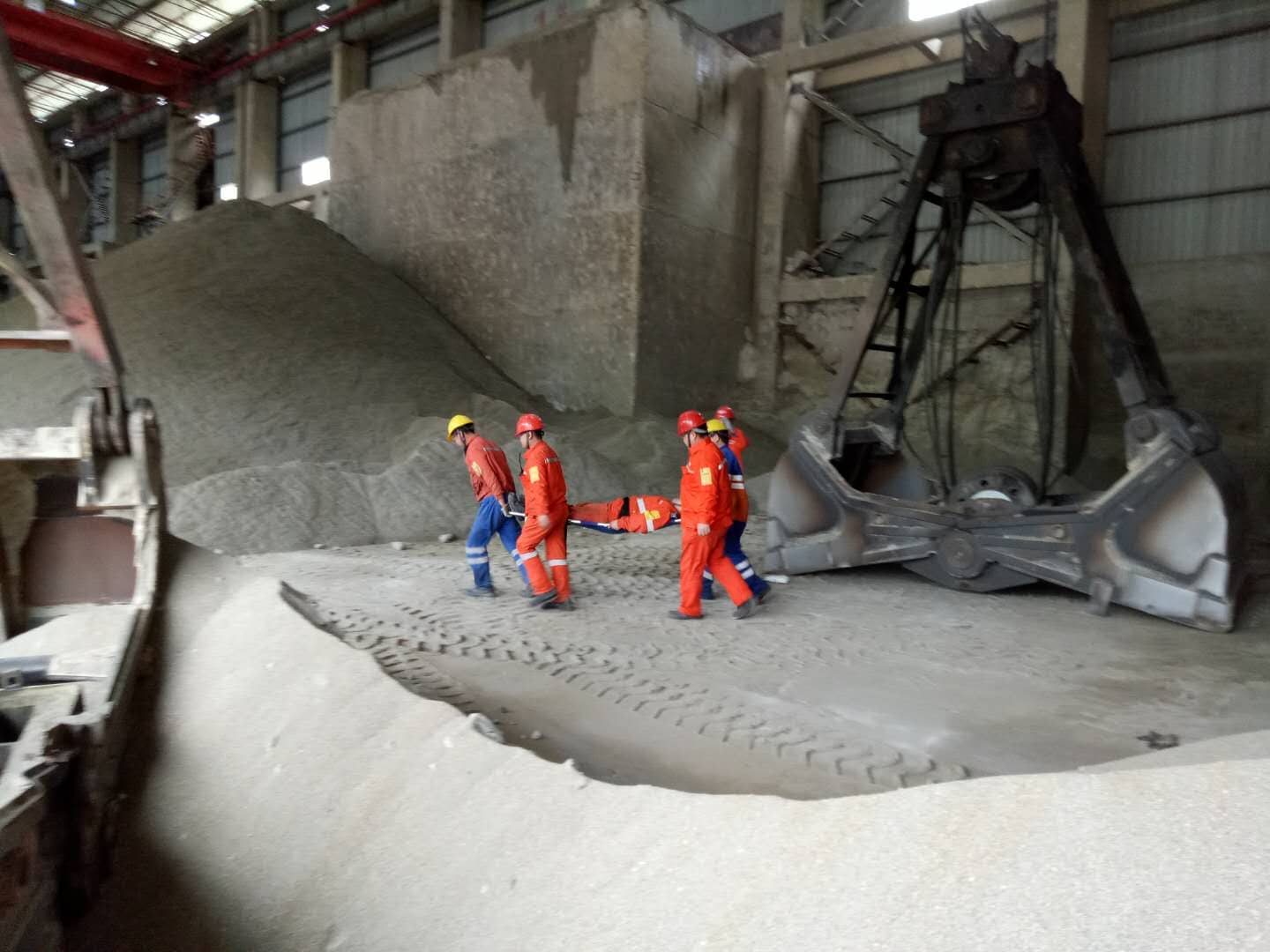 “事故”發生后,現場安全員立即向安全部長緊急報告。該公司迅速啟動了班組、部門、公司三級應急救援預案,安全部長迅速通知危險源控制組、安全救援組和醫療救護組人員緊急集合,第一時間展開救援行動。危險源控制組和安全救援組人員首先用鼓風機向磨機內送風、降溫,同時對磨機內氧氣進行檢測。根據檢測結果,在做好安全防護措施后,醫療救護組人員進入磨機實施救援,并用擔架將“事故”人員抬到空曠通風處,進行現場急救,同時撥打當地“120”趕往現場救援。整個演練過程緊張有序,各應急救援小組在爭分奪秒的同時,處置環節配合默契,在最短的時間內完成了從事故發生、自救和啟動三級應急聯動、人員疏散及搜救、物資回收等過程。演練結束后,安全部長向各位員工詳細講解了進入磨機作業前的安全準備事項和作業步驟、氣體檢測儀等安全設備和器材的使用、防護用具的穿戴方法、事故發生后的報告程序等。同時,安全部將對本次演練進行總結,及時查找漏洞和不足,以便在今后的工作中加以改進。