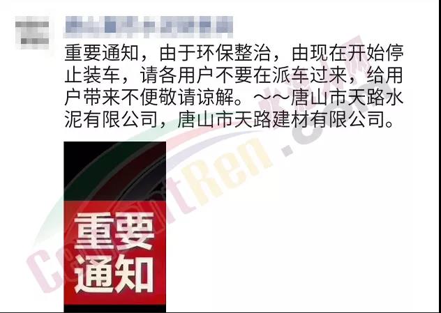 據水泥人網了解,應此前唐山市豐潤區生態環境保護工作領導小組辦公室文件要求每日20時至次日8時禁止運輸車輛進入廠區內,并未停發水泥。部分企業因庫容量較小,為保供重點客戶對部分經銷商客戶暫停供應。