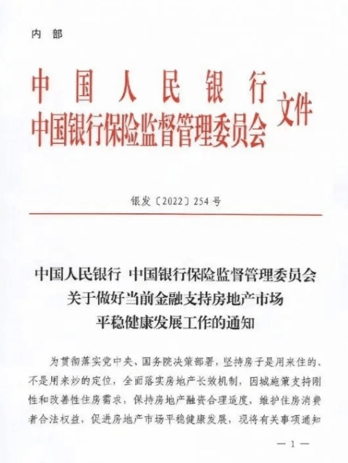 11月13日,一份由央行和銀保監會聯合發布的《關于做好當前金融支持房地產市場平穩健康發展工作的通知》(銀發〔2022〕254號)(下稱“254號文”)引發強烈關注。