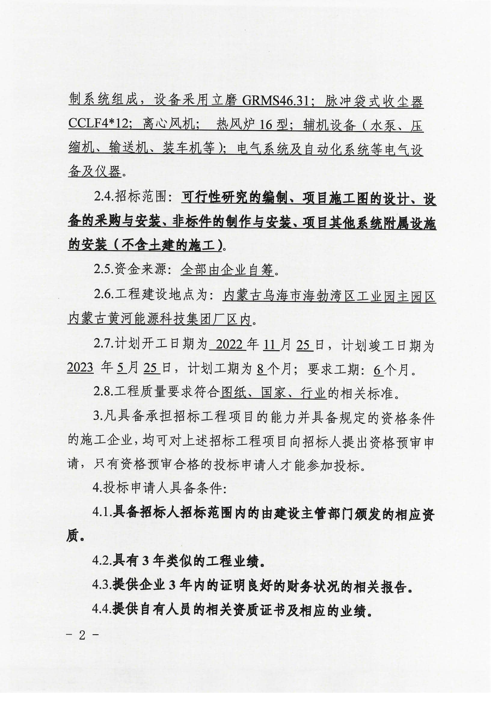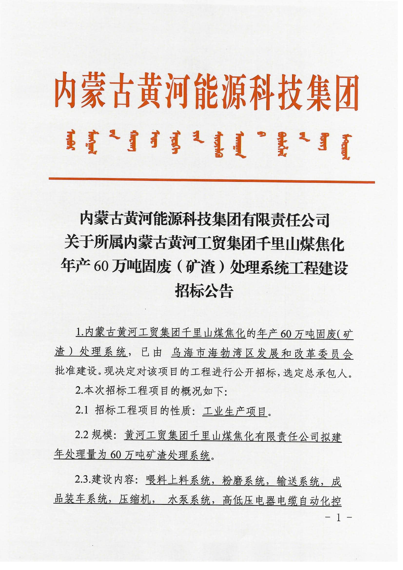 內蒙古黃河能源科技集團固廢處理系統工程建設招標公告