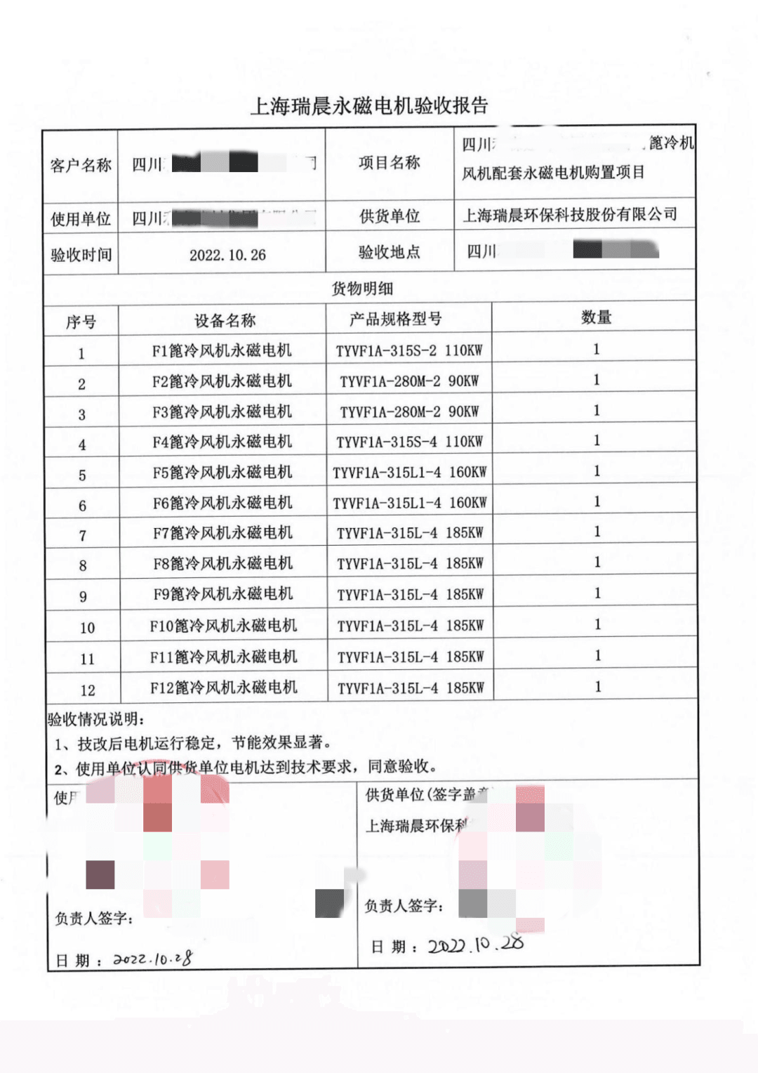 在篦冷風機和永磁電機正常運行后,該水泥企業(yè)聯(lián)合瑞晨環(huán)保和第三方對其進行驗收,驗收報告如下所示: