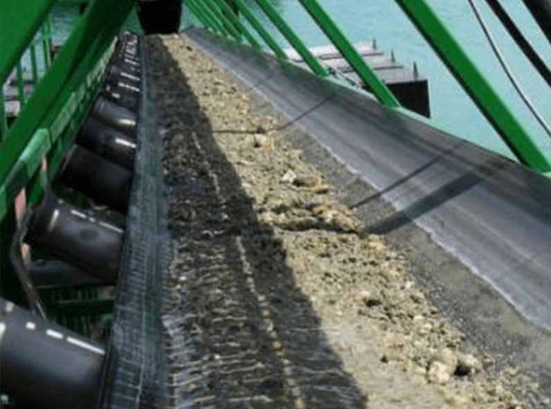 皮帶依靠托輥的支撐和頭尾輪的張緊形成了槽型,從而實現粉狀物料的運輸。