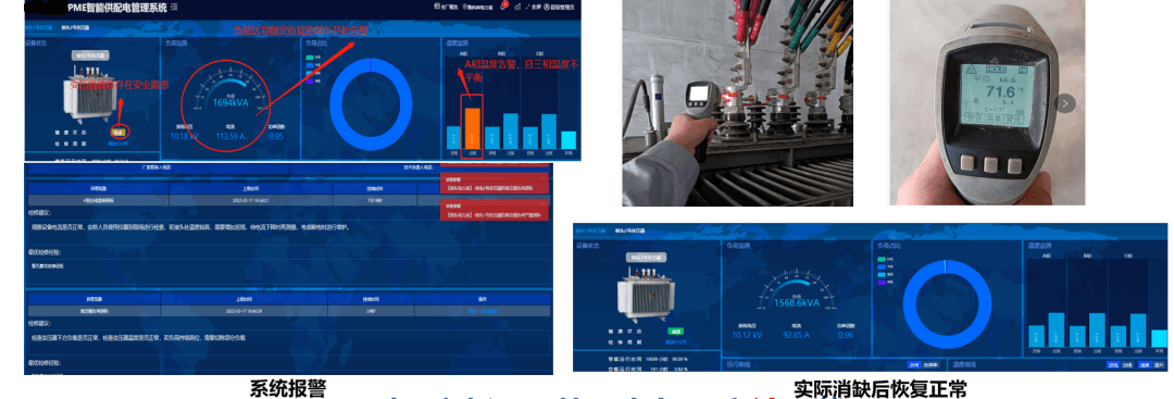 實現(xiàn)效果:實時看護關(guān)鍵設(shè)備,做到溫度異常實時監(jiān)測,故障類型可智能化分析,故障隱患可準確預(yù)警,主動推送設(shè)備報警信息,提示電氣人員快速準確檢修,避免了變壓器過熱燒毀、跳閘引起負載端設(shè)備停機,造成停產(chǎn)損失,保障了系統(tǒng)和設(shè)備的穩(wěn)定運行。