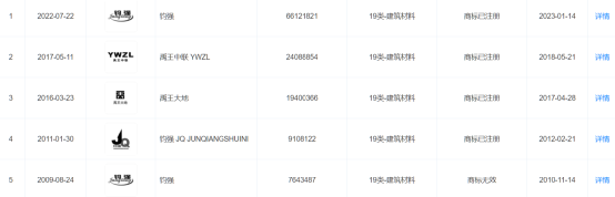 河南省鈞強水泥有限公司注冊商標圖片當前狀態為已注冊,有效期內。且同時擁有“鈞強、禹王大地”等多個注冊商標。