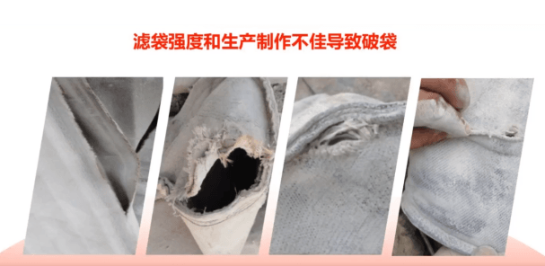 濾料破損、濾料本身透濾、濾袋縫制質量不好、濾速過高等。