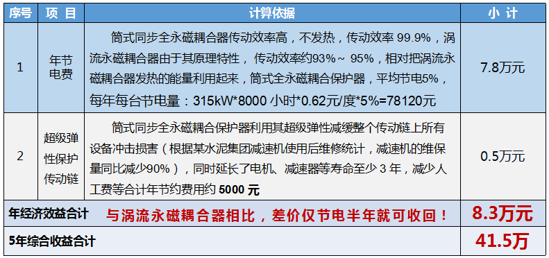 由此產(chǎn)生的經(jīng)濟效益十分可觀!以原使用渦流永磁耦合器對比估算(按315kW電機估算):