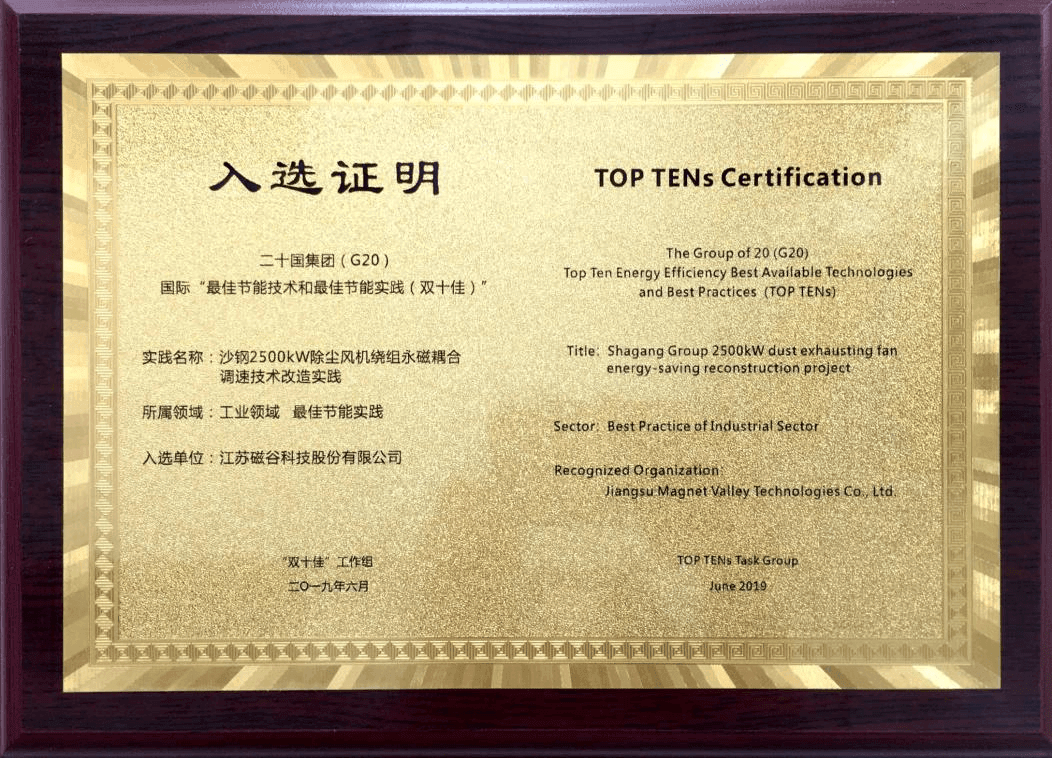 2、入選G20“國(guó)際雙十佳”(節(jié)能領(lǐng)域最高榮譽(yù)),第一屆2014年,第二屆2019年,入選中國(guó)企業(yè)僅三家;
