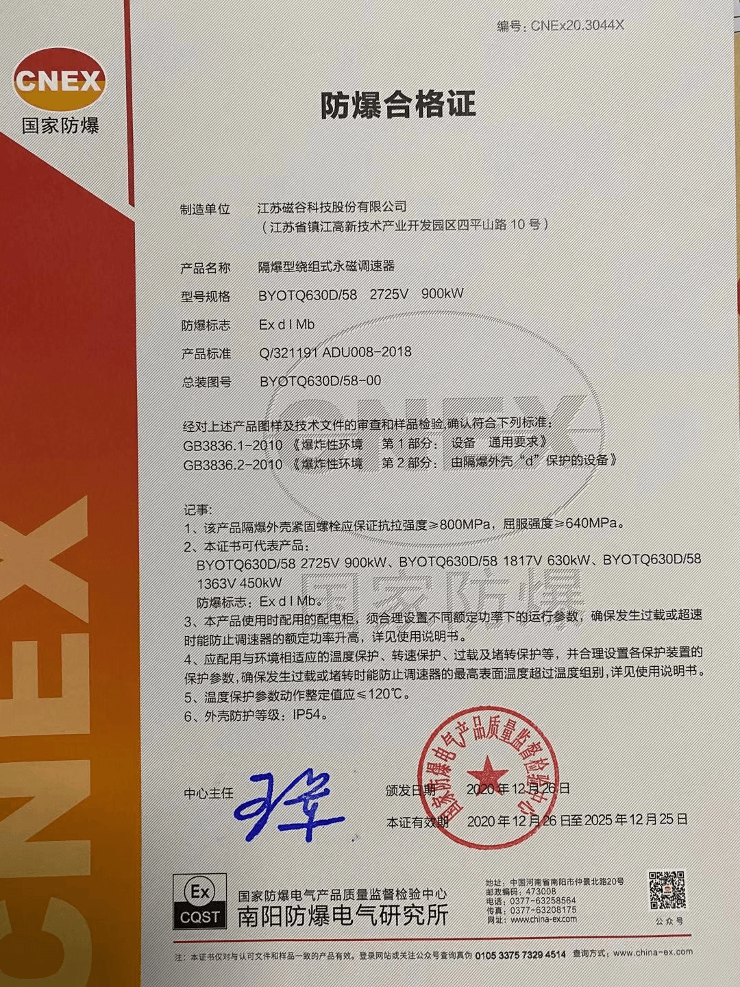 8、獲得國(guó)家防爆電氣產(chǎn)品質(zhì)量監(jiān)督檢驗(yàn)中心頒發(fā)的防爆合格證。