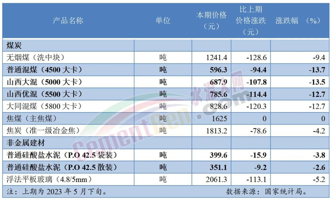 日前,國家統(tǒng)計局發(fā)布6月上旬流通領(lǐng)域水泥報價,P.O42.5包裝、散裝水泥雙雙跌破400元/噸。其中,散裝水泥環(huán)比5月下旬再跌9.2元/噸,報351.1元/噸;包裝水泥環(huán)比跌15.9元/噸,報399.6元/噸。同期4500~5500大卡煤價也跌至了800元/噸以下。