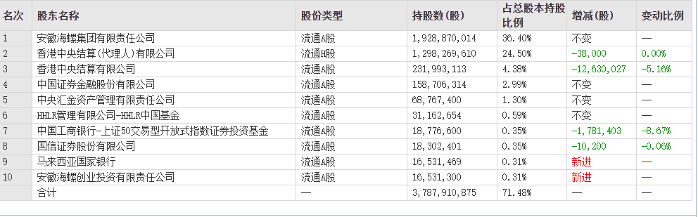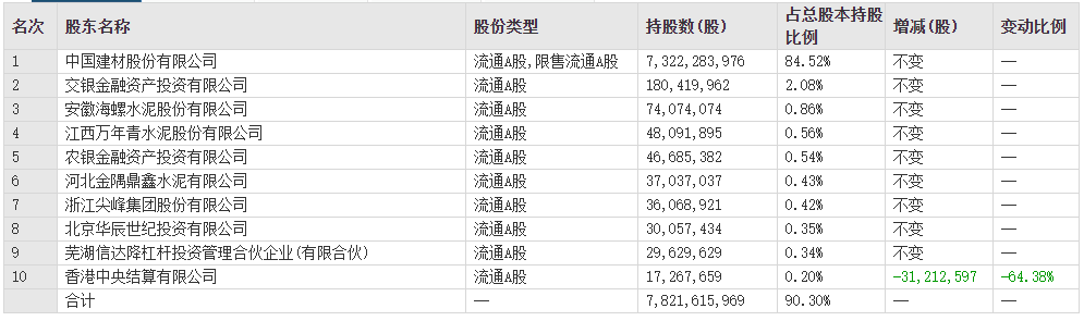 圖:海螺水泥10大股東