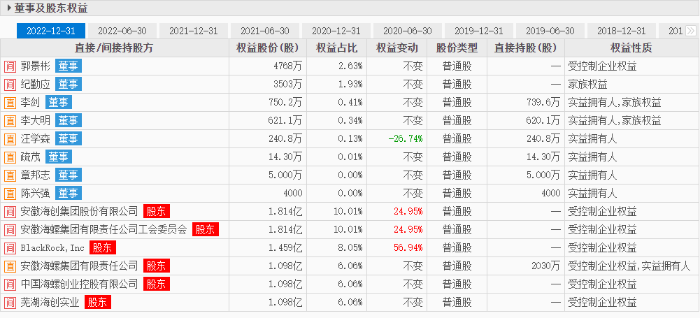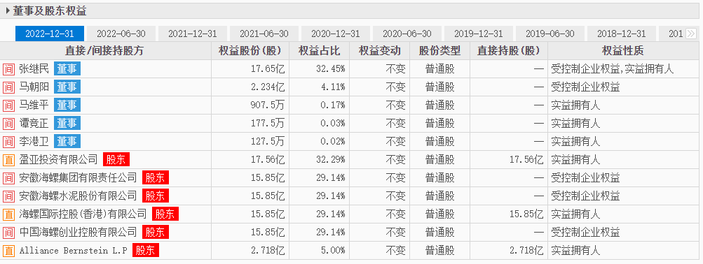 圖:海螺創(chuàng)業(yè)董事及股東權(quán)益