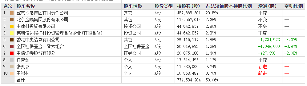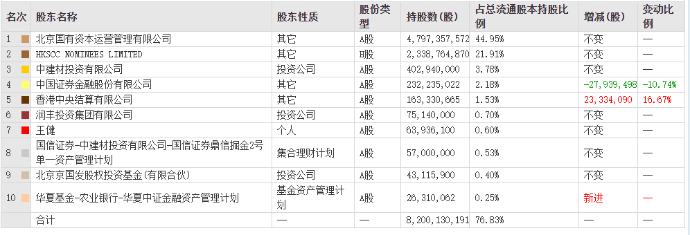 圖:金隅集團(tuán)10大股東