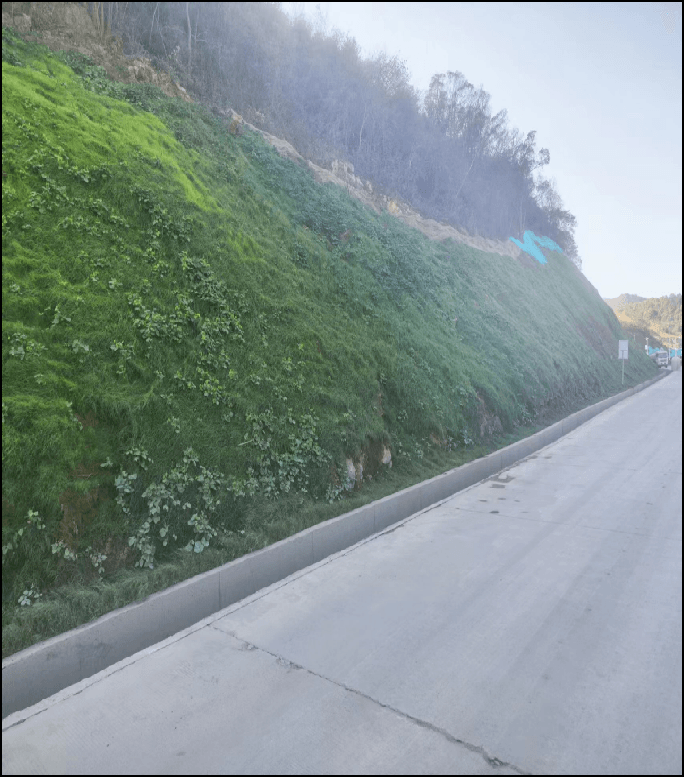 ②山體高陡堅硬,路基最大開挖高度54m,設計路面標高落差155.03m;