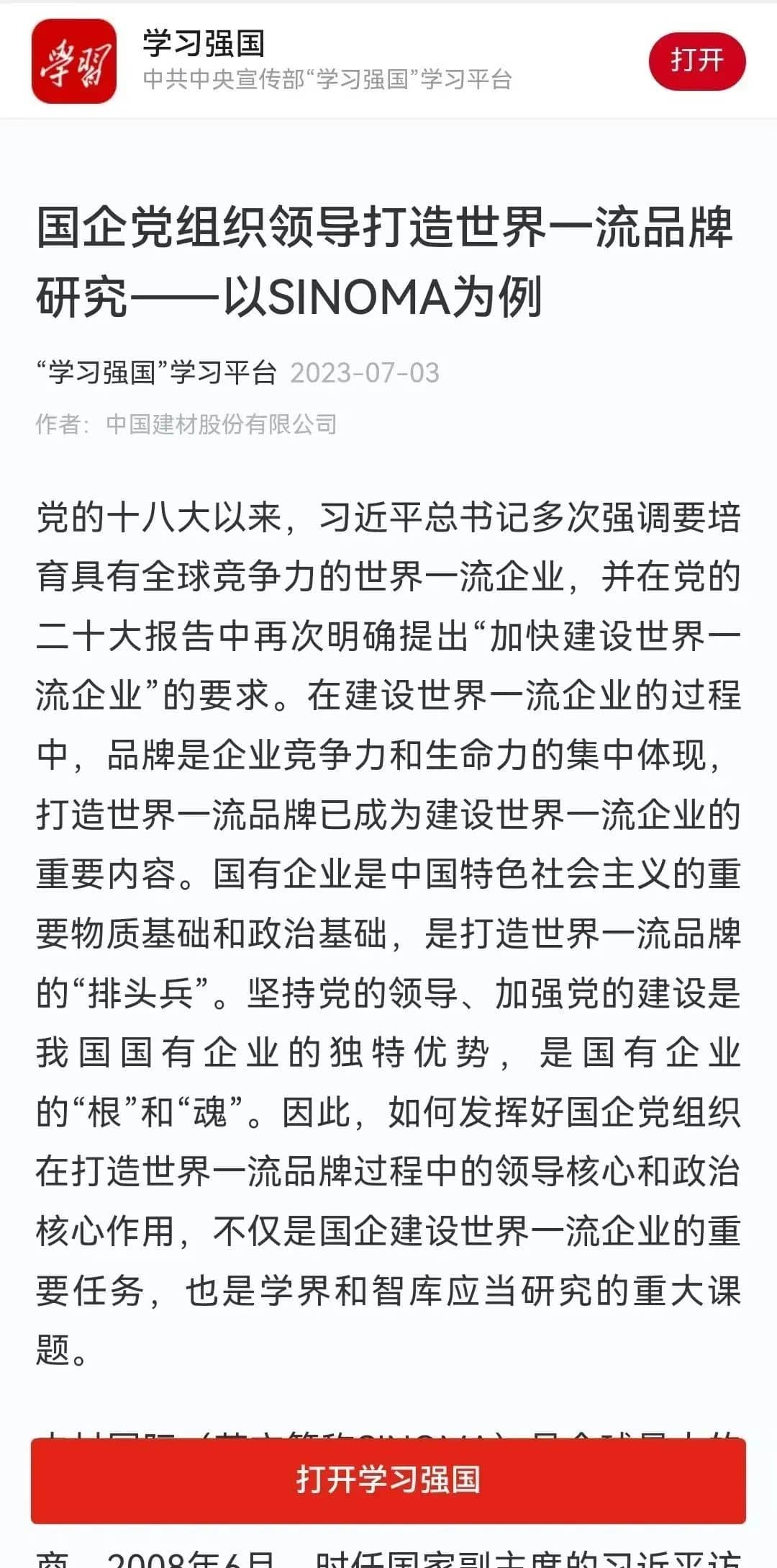 作為《國企》雜志封面文章被刊發后,