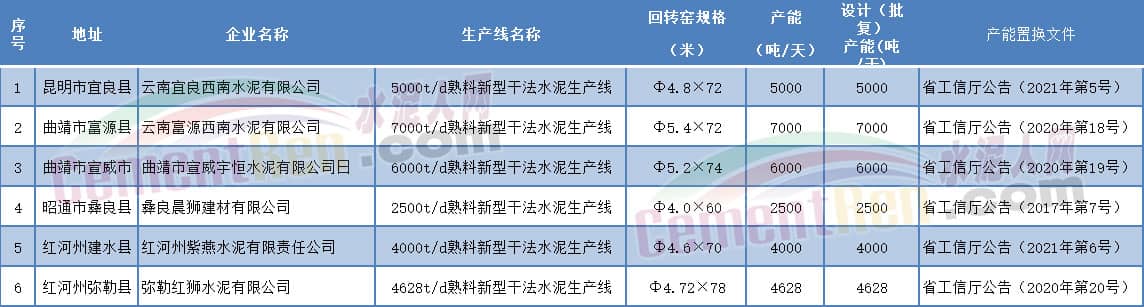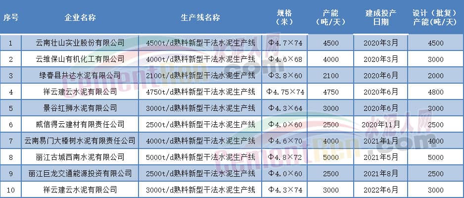 另外,云南工信廳發(fā)布的2022年云南省在建水泥熟料生產(chǎn)線清單中列出截至2022年末在建生產(chǎn)線共有6條。