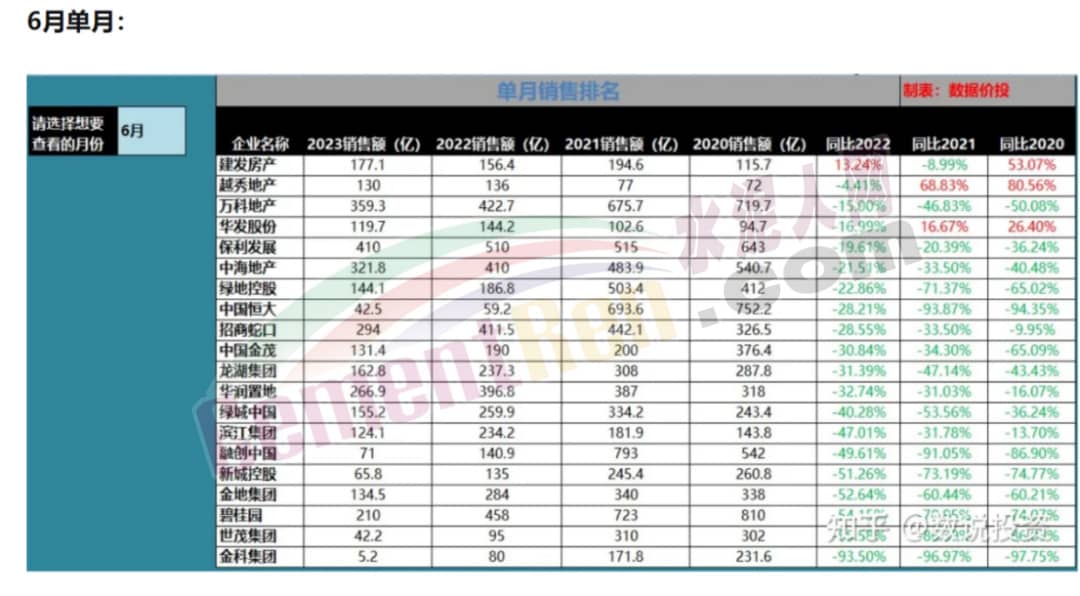 公開數(shù)據(jù)顯示,今年6月份碧桂園、濱江、新城控股、中鐵建、遠(yuǎn)洋等房企的銷售額均同比出現(xiàn)了腰斬,另外招商、華潤、金茂、龍湖、卓越等房企6月銷售額同比的跌幅也都在30%上下,萬科、保利、中海、綠地、華發(fā)等房企6月銷售額同比的跌幅也都在20%左右。6月房企實現(xiàn)銷售操盤金額5267.4億元,單月業(yè)績同比降低28.1%。