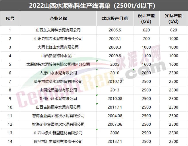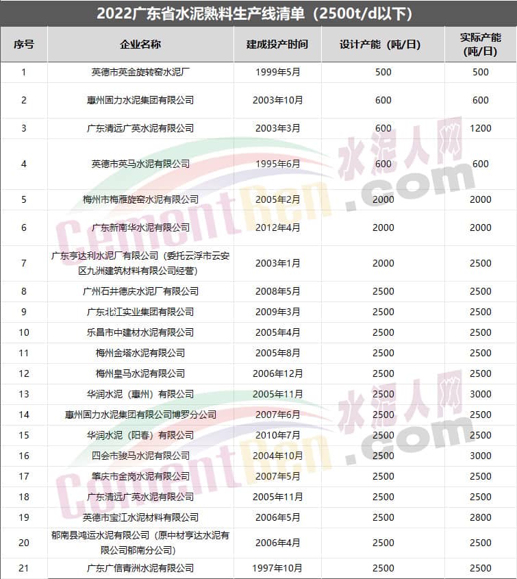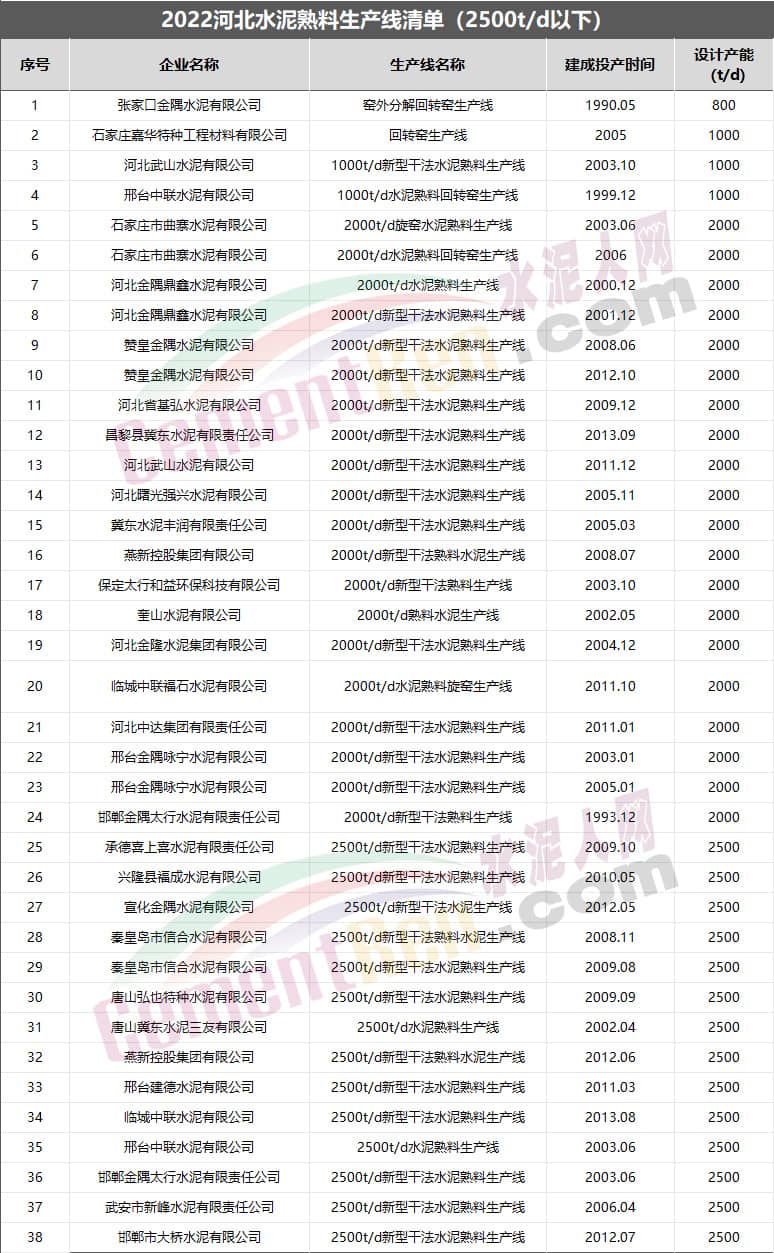 山東省:2022年年底前,除特種水泥熟料和化工配套水泥熟料生產(chǎn)線外,2500噸/日以下的水泥熟料生產(chǎn)線已全部淘汰,2023年6月底前全部拆除的生產(chǎn)裝置。2500噸/日的水泥熟料生產(chǎn)線整合退出一半,其余2500噸/日水泥熟料生產(chǎn)線須確定產(chǎn)能置換方案。逾期未完成產(chǎn)能置換的水泥熟料生產(chǎn)線直接關(guān)停退出。