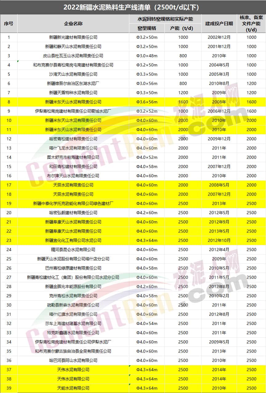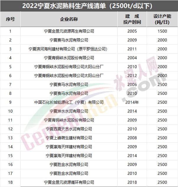 寧夏回族自治區(qū):《寧夏回族自治區(qū)能耗雙控產(chǎn)業(yè)結(jié)構(gòu)調(diào)整指導目錄(試行)》要求,2023年淘汰2500噸/日以下水泥熟料生產(chǎn)線、JT窯、直徑3.2米以下水泥磨機(含礦粉磨機),化工配套水泥熟料生產(chǎn)線于2024年前淘汰;2025年前淘汰2500噸/日的水泥熟料生產(chǎn)線(化工配套水泥熟料生產(chǎn)線除外)。