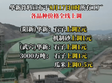 另據市場反饋,華新骨料曾于8月17日0時上調所有工廠產品價格。