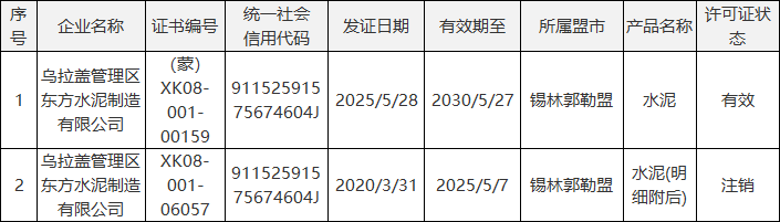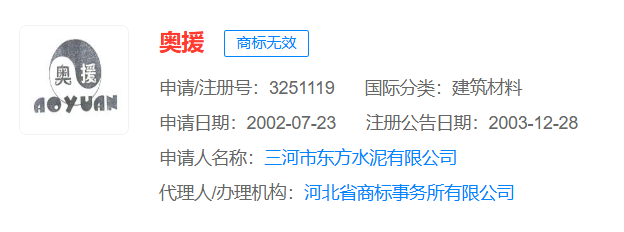 在梳理抽檢信息時(shí)發(fā)現(xiàn),部分不合格企業(yè)還存在資質(zhì)與商標(biāo)使用不規(guī)范問(wèn)題,涉嫌違反相關(guān)管理規(guī)定。烏拉蓋管理區(qū)東方水泥制造有限公司成為典型案例。該企業(yè)生產(chǎn)的“奧援”牌礦渣硅酸鹽水泥(P.S.A42.5),不僅氯離子檢測(cè)不合格,還存在雙重違規(guī):一是生產(chǎn)許可證編號(hào)“XK08-001-006057”已處于注銷狀態(tài),企業(yè)雖已申請(qǐng)新證“(蒙)XK08-001-00159”,但產(chǎn)品包裝未及時(shí)更新標(biāo)注;二是所使用的“奧援”商標(biāo),實(shí)際歸屬三河市東方水泥有限公司,且當(dāng)前商標(biāo)狀態(tài)為“無(wú)效”,涉嫌違規(guī)使用他人失效商標(biāo)。