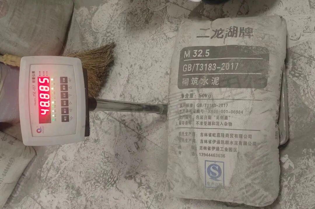 袋重偏差問題同樣不容忽視。7批次袋重不符合標準要求的產品涉及6家企業。其中吉林省長春新興水泥廠“欣業”牌M32.5標稱50kg,隨機抽查四包M32.5砌筑水泥,實測重量分別為47.565kg、47.650kg、48.805kg、49.425kg,平均袋重約48.36kg,與標準要求49.5kg相差約1.14kg。